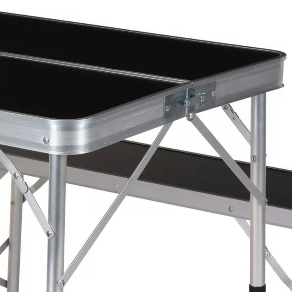 Dieses schwarze Campingtisch-Set mit 2 Bänken von Redcliffs ist eine perfekte Wahl für unterwegs, da es sich zu einem Koffer zusammenklappen lässt. Der Tisch und die 2 Sitzbänke bestehen aus MDF und sind mit einer wasserdichten Umrandung und Beinen aus Aluminium versehen. Das Set von Redcliffs lässt sich einfach zusammenbauen und auf Tagesausflüge oder in den Urlaub mitnehmen.